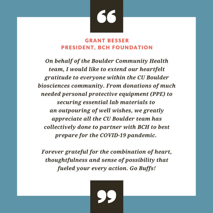 RT @BoulderCHealth: Special thank you to @CUBoulder @CUEngineering @CuSciences @CUBoulderIPHY https://t.co/VQpG4fRzpg
