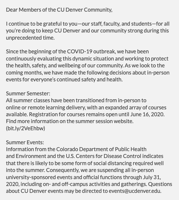 COVID-19 Update (April 17, 2020): Summer Events Go Remote, Fall Semester Planning https://t.co/SrKTf2dNRR https://t.co/7zd5Ep7cly