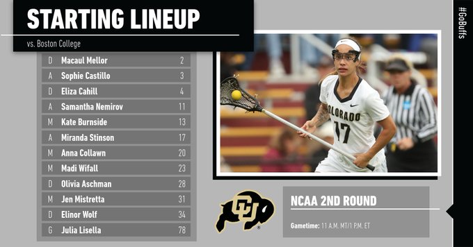 RT @CUBuffsWLax: Time for the NCAA 2nd round! Colorado at Boston College 📍 Newton, Mass. (Newton Campus Lacrosse and Soccer Field) ⏰… https://t.co/nKI1NWH2j7