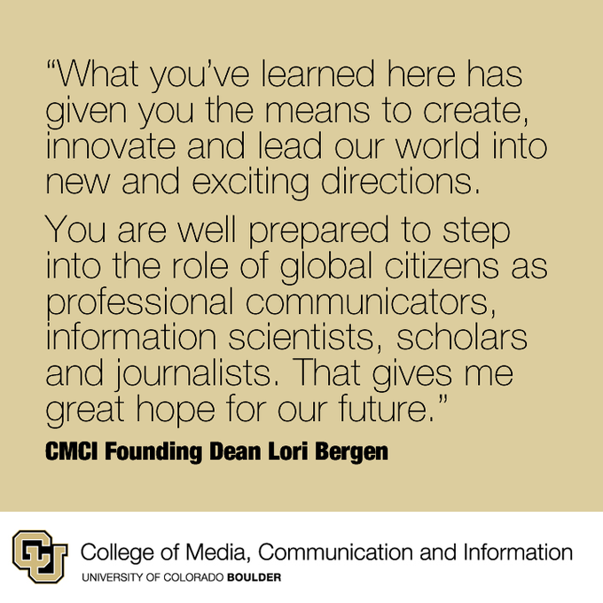 RT @CUBoulderCMCI: Founding Dean Lori Bergen addresses Class of 2019 graduates. #CelebateCMCI #ForeverBuffs https://t.co/i4BAjaFL6j