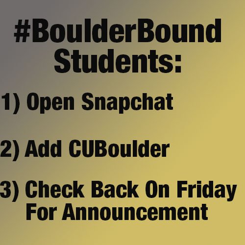 RT @mycuboulder: Make sure you follow CUBoulder on Snapchat on May 1st!! #BoulderBound https://t.co/5VDbX4MIte
