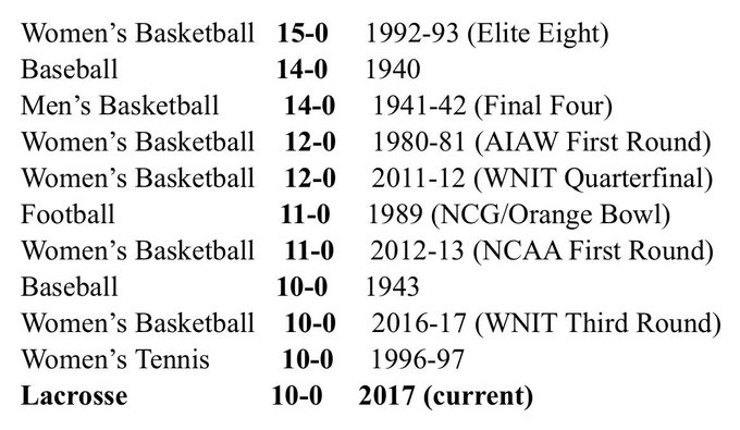 There are now 11 teams to start a season 10-0 or better since 1890. @CUBuffsWLax got there today. #GoBuffs https://t.co/Nl2a6CdnTN