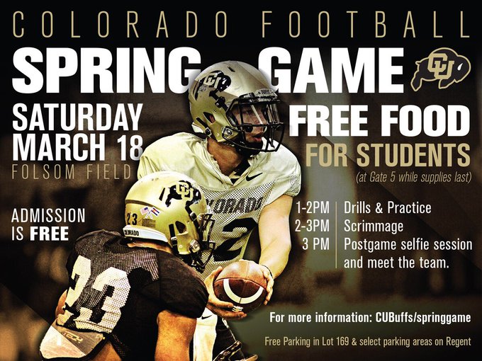 RT @CUnitFootball: Wake up Buffs! The Spring Game is TODAY! Head out to Folsom to get free food! https://t.co/zEyi0lxxN8