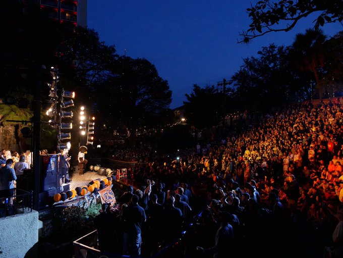 RT @RunRalphieRun: From earlier tonight, the Buffs cruising on down the river to the @valeroalamobowl Pep Rally. #GoBuffs https://t.co/yZXZf87GjT