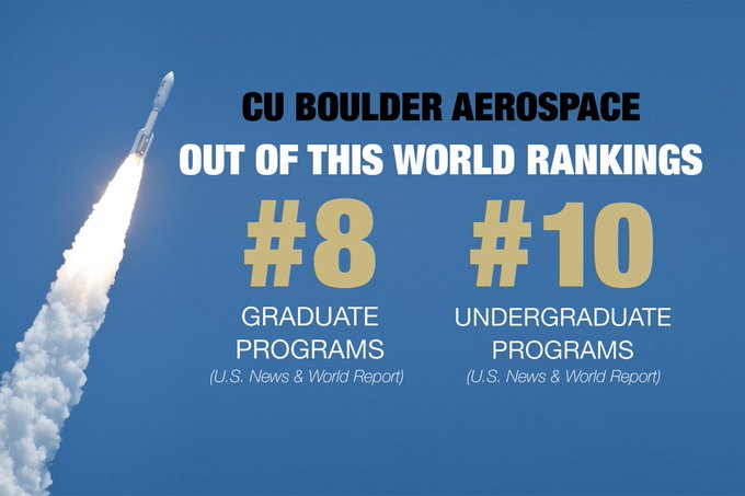 RT @cuengineering: @CUBoulder #Aerospace is out of this world! New @USNews rankings No. 8 in the nation. https://t.co/zC0Sq4j914 https://t.co/sSptqYMvai
