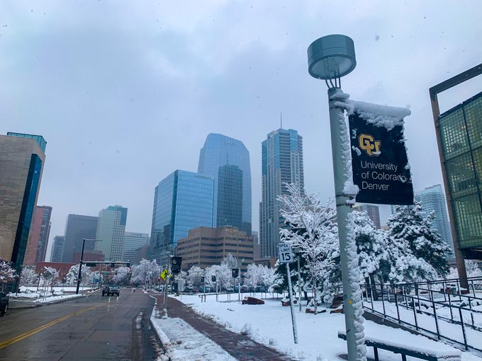 Colorado didn't get the memo that it's spring. ❄️ #CUDenver #CUintheCity #spring https://t.co/pJHSDkaSJv